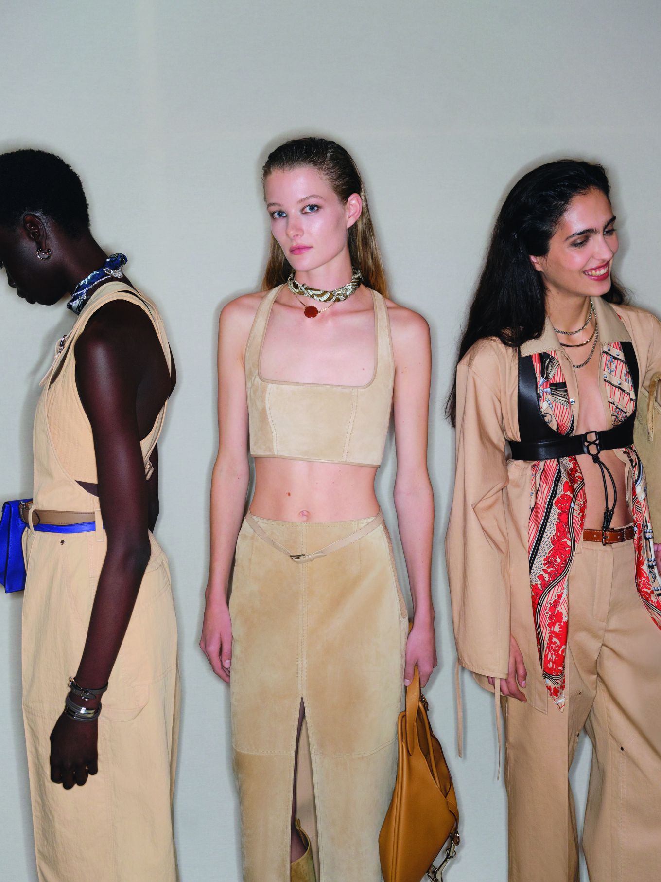 Färgpaletten är jordnära och sensuell – sand, terrakotta och solblekt läder – medan silhuetterna förkroppsligar frihet, styrka och femininitet. En kollektion för kvinnan som rider genom livet med tyglarna lösa.